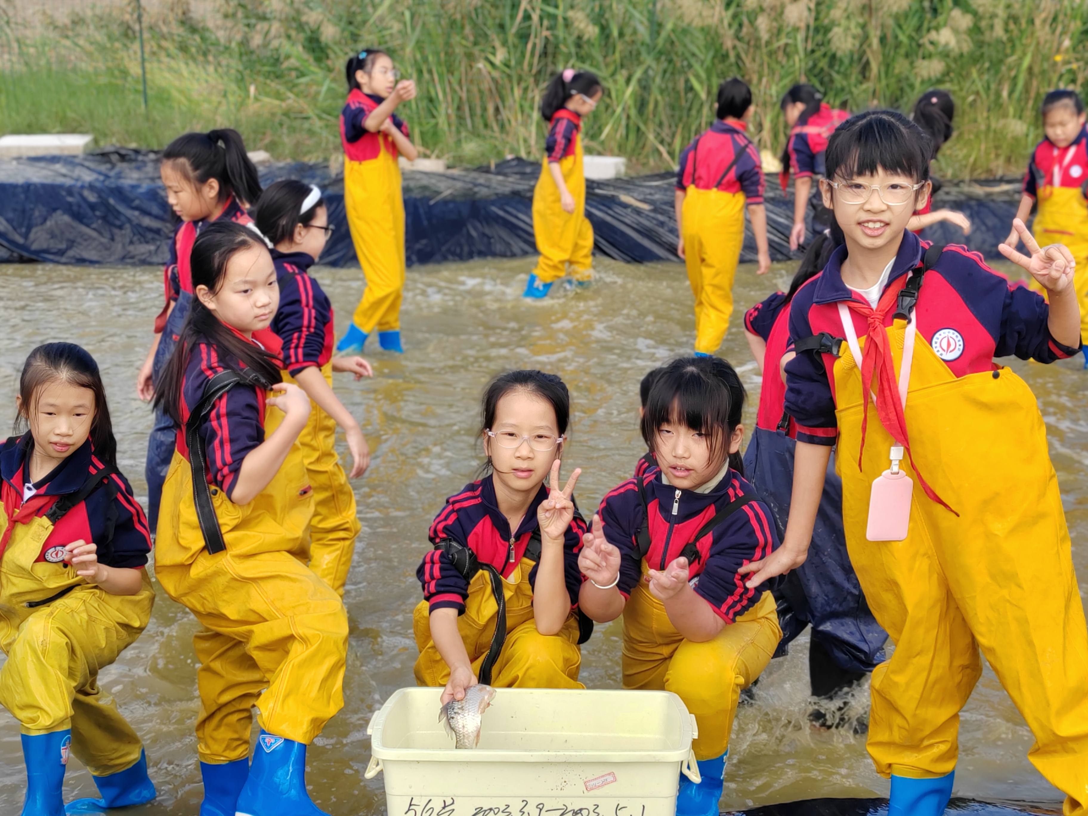 除了食品科學探索,學生們還以“灘涂小司機”的身份,沉浸式體驗慈溪特色灘涂農耕民俗。學生們騎上泥馬船在灘涂滑行,在魚塘里捕魚,尋覓秋日收獲,在歡聲笑語中感受圍墾農耕的辛勞與快樂,也加深了對本土文化的認識。