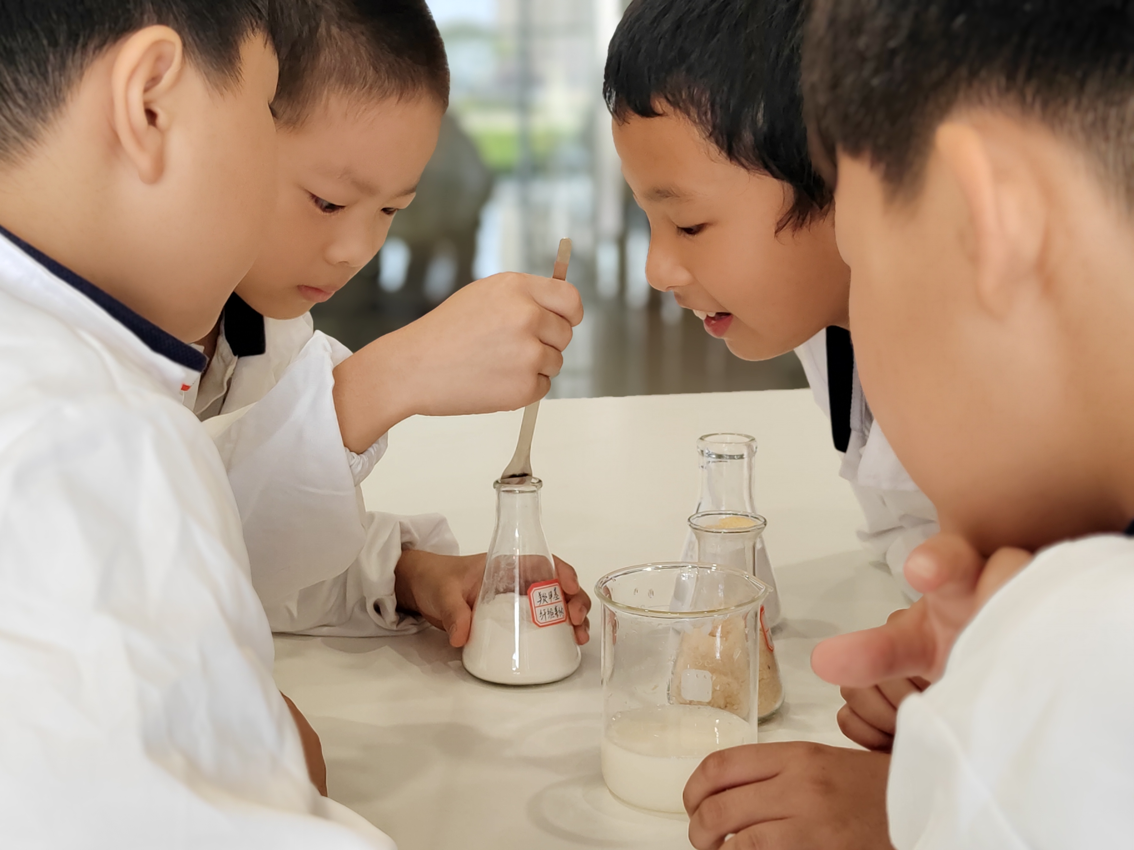 “食品科學探秘”課程里,學生們參與模擬食品的制作過程,在動手操作中了解食品成分構成的科學原理,學會以理性視角分辨食品品質,樹立健康科學的飲食觀念。