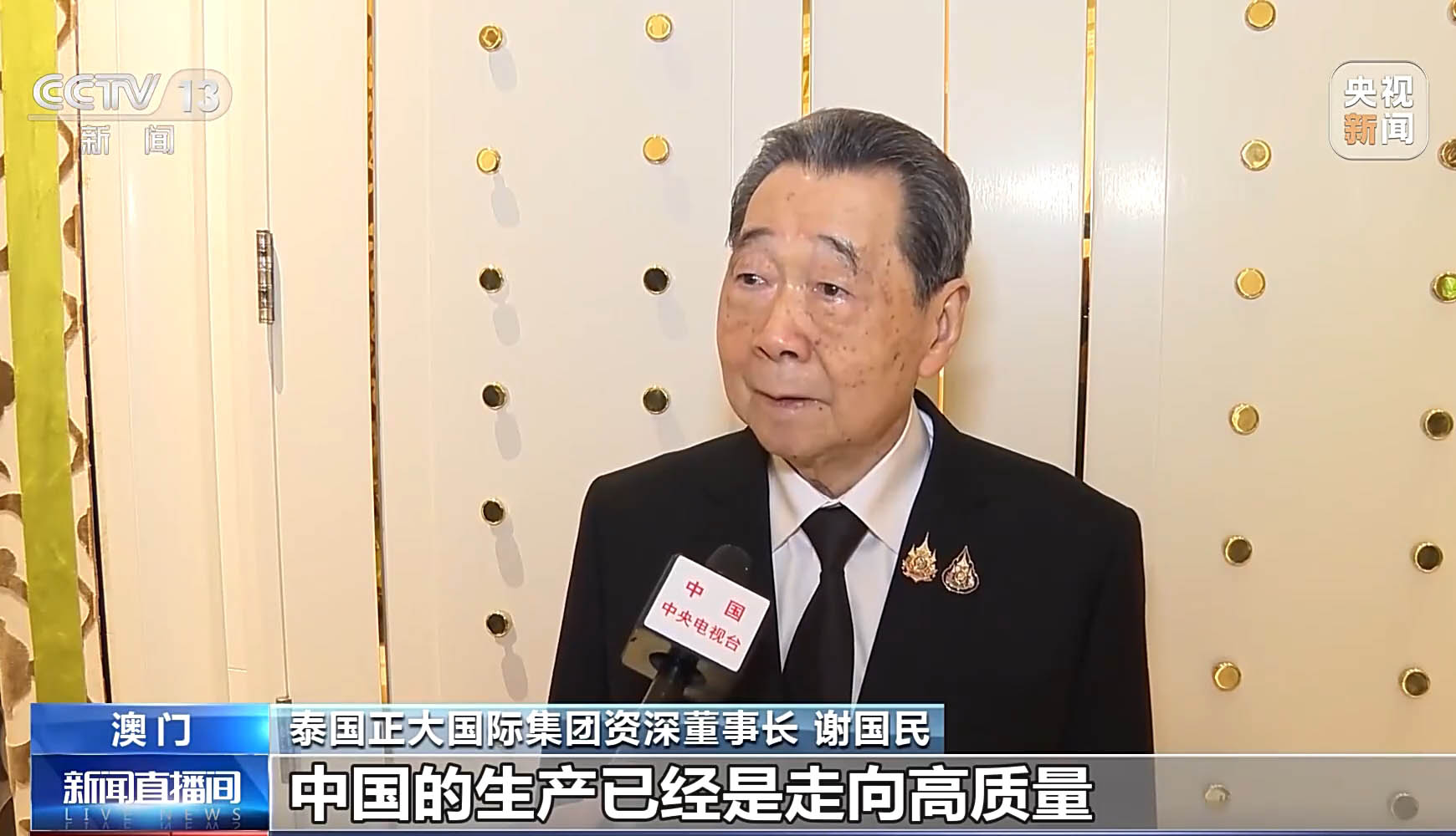 ▲CCTV記者專訪謝國民集團資深董事長。他表示,中國的生產正在以一日千里的速度發展著,全面邁向高質量與AI人工智能。基于此,我們非常看好中國未來高科技的發展前景。