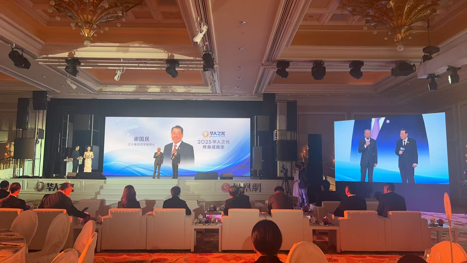 3日晚,謝國民集團資深董事長、謝吉人集團董事長參加了首屆“華人之光”年度人物頒獎盛典。本屆盛典以“華人之光,照亮世界”為主題,旨在禮贊在實業報國、科技創新、文化傳播、全球治理等領域作出卓越貢獻的杰出華人代表,謝國民集團資深董事長獲頒2025華人之光終身成就獎,鳳凰衛視總編輯、執行董事、鳳凰網董事長兼CEO孫玉勝為其頒獎。