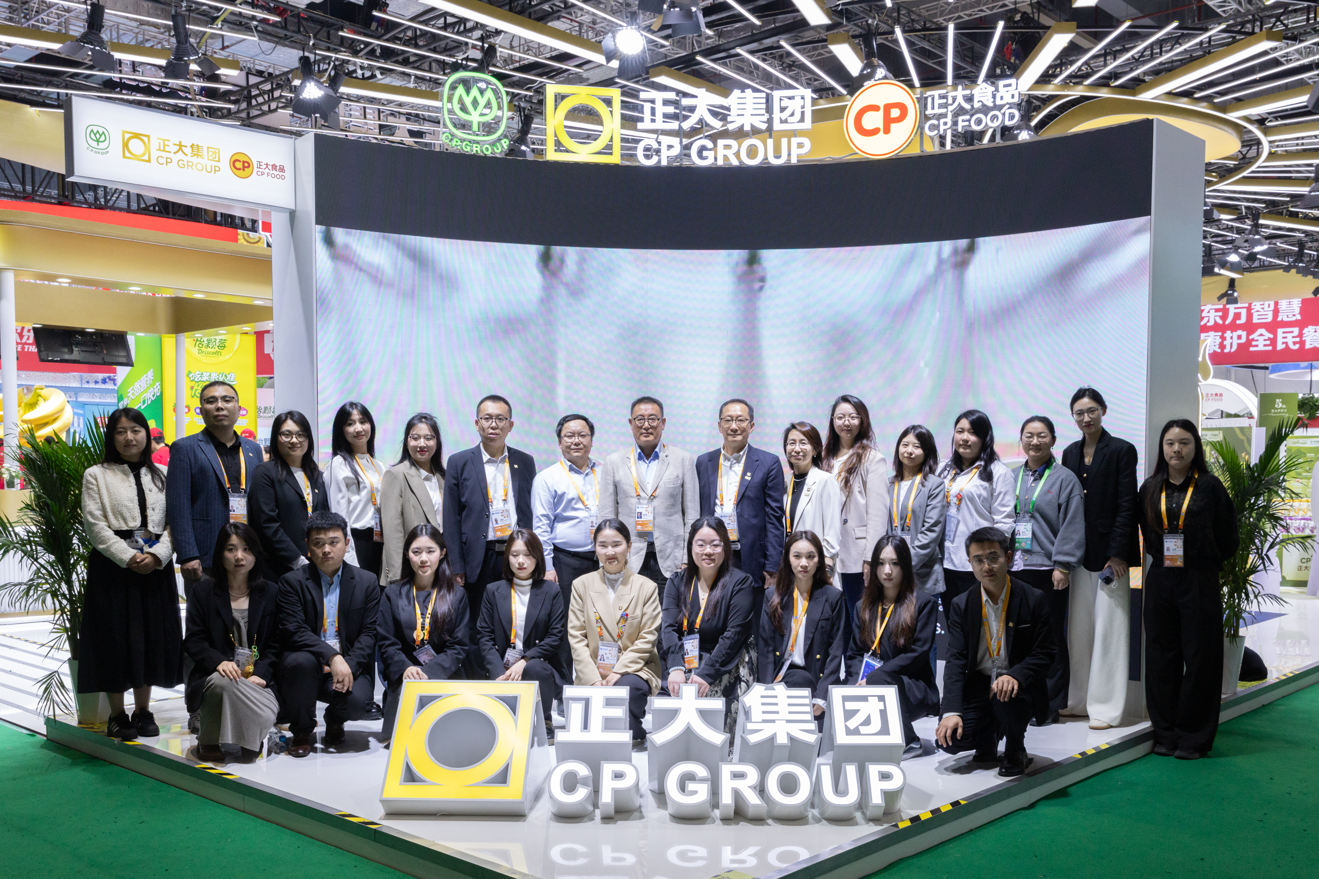 ▲正大集團(tuán)資深副董事長(zhǎng)羅家順(左十)蒞臨正大展館指導(dǎo)工作,與現(xiàn)場(chǎng)工作人員合影留念。