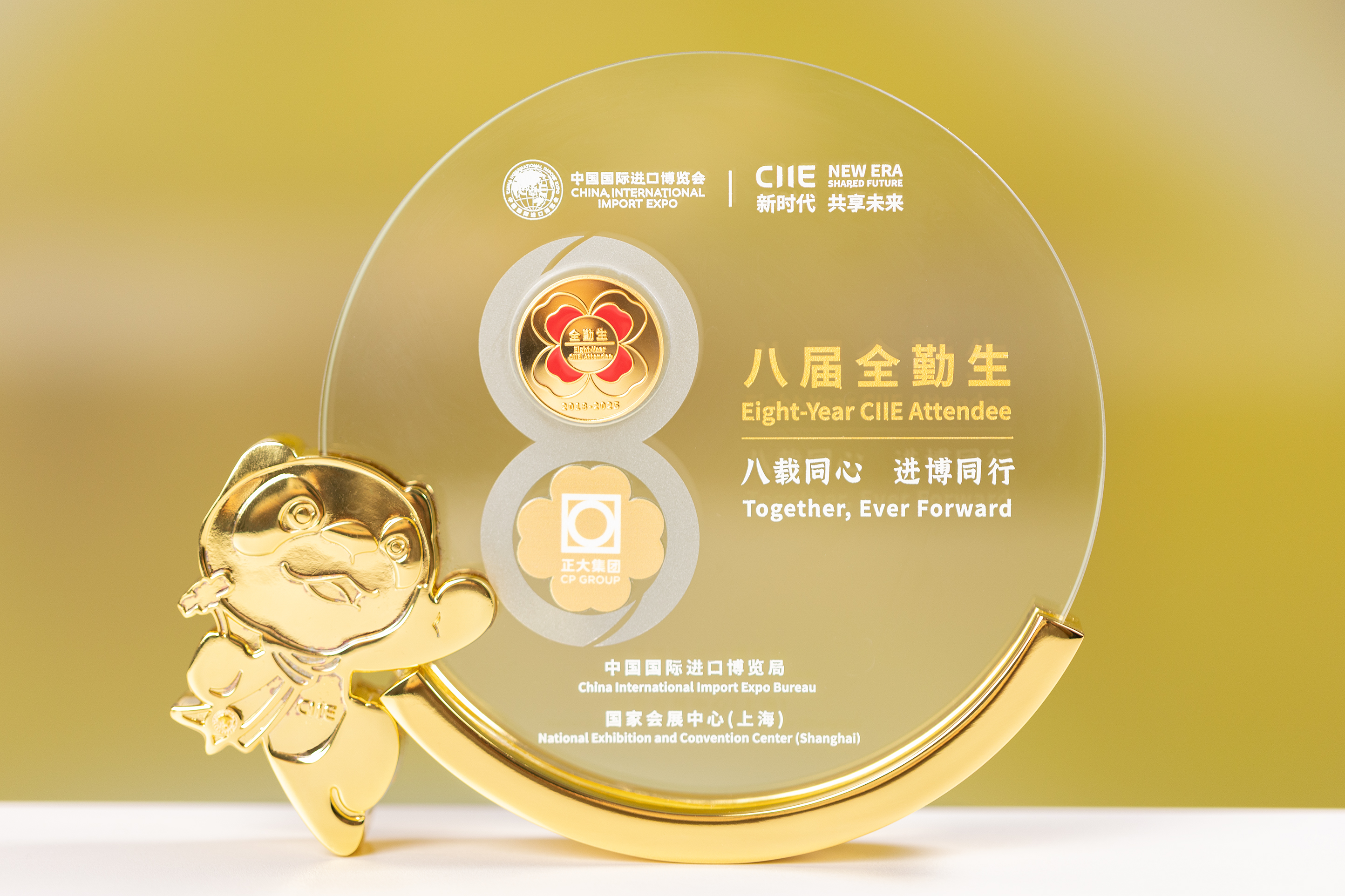 ▲正大集團(tuán)榮獲進(jìn)博會(huì)“八屆全勤生”獎(jiǎng)牌。