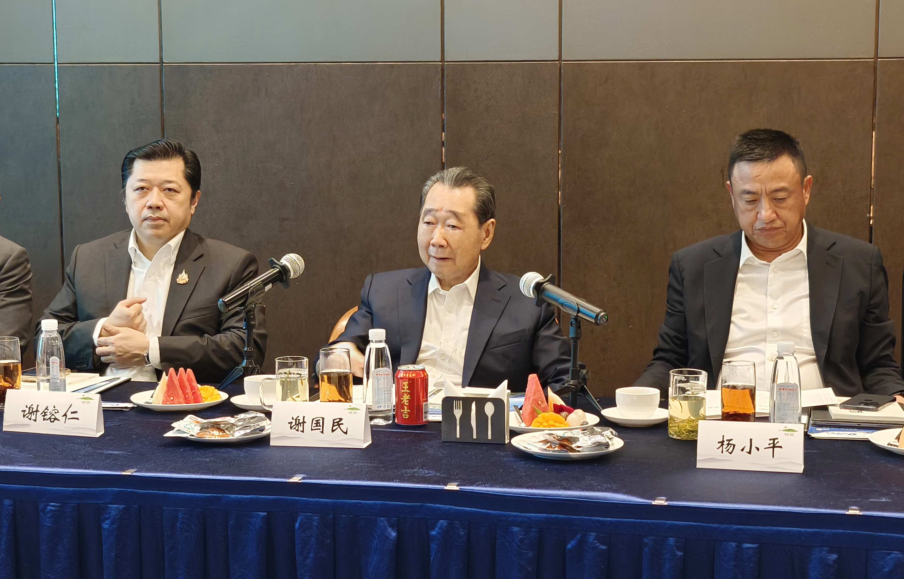 7月6日,正大集團資深董事長謝國民、首席執行官謝镕仁在河南考察期間,與信陽市委書記蔡松濤一行在鄭州舉行座談會。信陽市委副書記、市長陳志偉,市委副書記、政法委書記楊進,市委常委、常務副市長趙軍偉,副市長汪明君出席座談會。