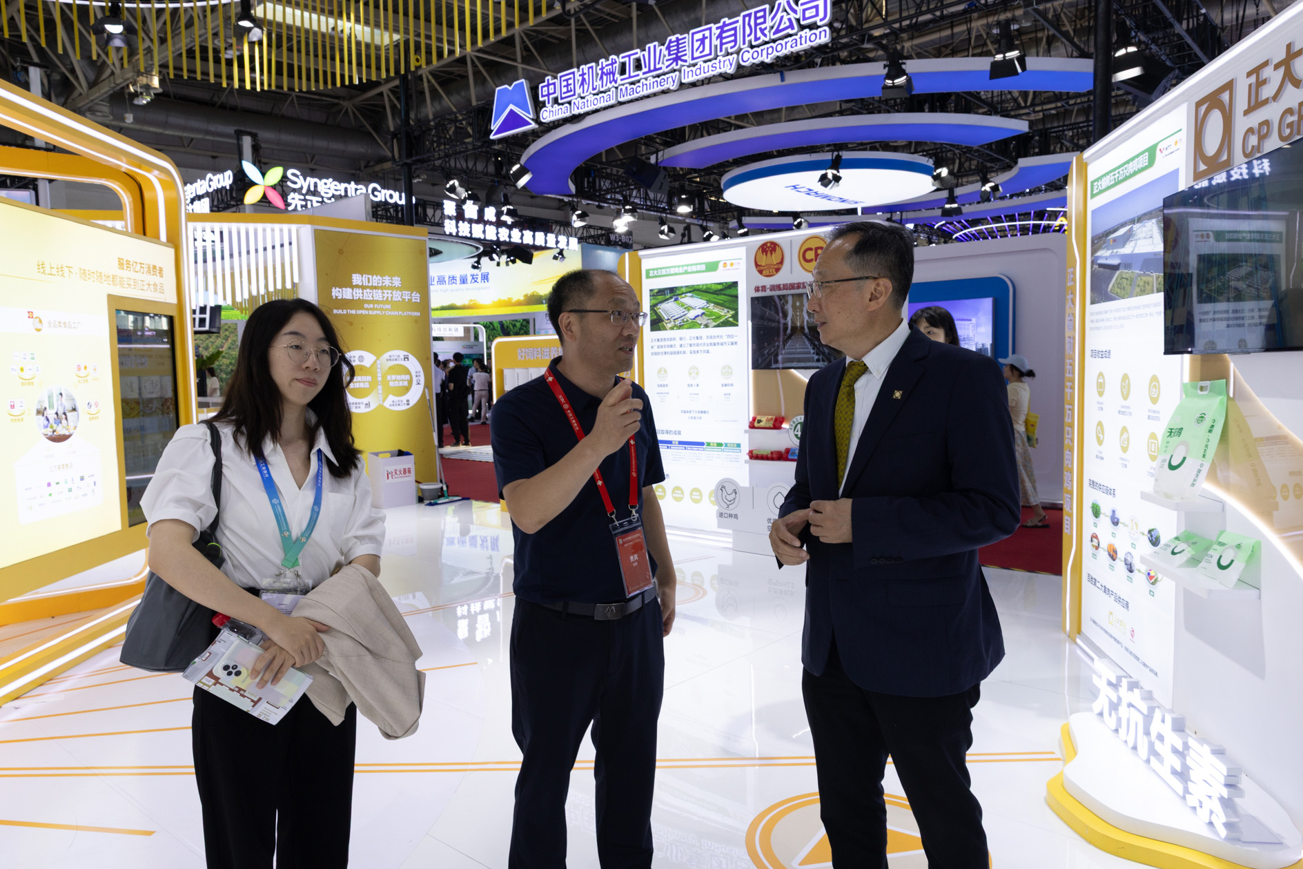 農業農村部科技教育司農技處一行參觀正大展館,張曙暉資深總裁(右)熱情接待來賓。